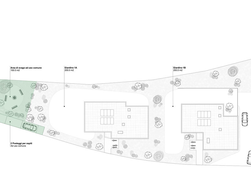 Den Bewohnern stehen außerdem ein Gemeinschaftsgarten, zwei Abstellräume für Kinderwagen und Fahrräder sowie zwei Außenparkplätze für Gäste zur Verfügung.
